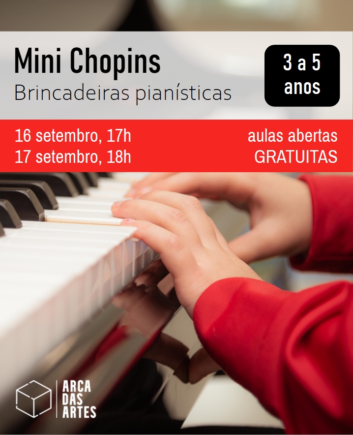 Os ateliers Mini Chopins estão recheados de jogos, brincadeiras e muitas diversões, sempre em torno da música e do piano. Haverá melhor forma de contactar com o piano e encetar uma nova forma de comunicar e sentir o mundo?